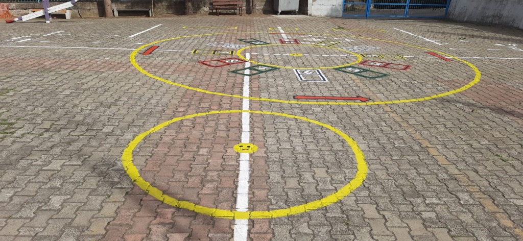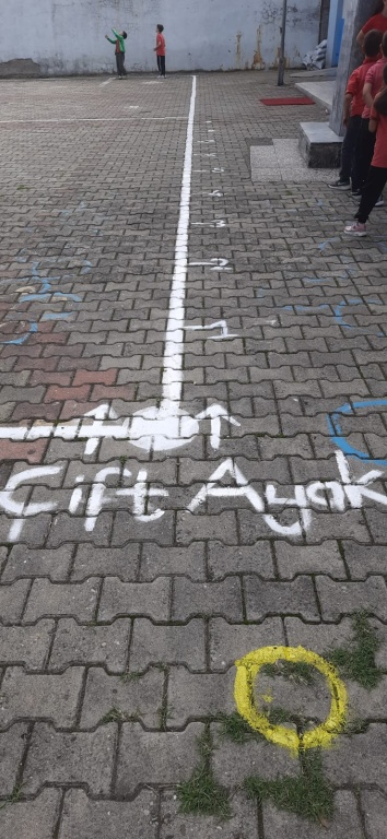 Geleneksel Çocuk Oyunları kapsamında öğrencilerimizin okulda rahatça oyunlarını oynayabilecekleri şekilde saha çizgilerimizi çizdik.Yağ Satarım Bal Satarım,Kaleli Yakan Top,Mendil Kapmaca,Sek Sek,Koşu,Çift Ayak Atlama,Sırt Sırta Top Taşıma vb. oyunları öğrencilerimiz kolayca oynayabilecekler.eleneksel Çocuk Oyunları'nın öğrencilerimiz için amaç ve faydaları şunlardır: